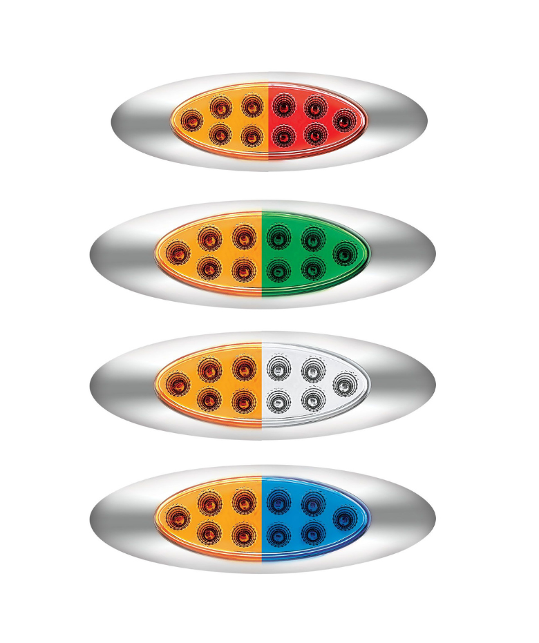 10 LED Oval Dual Color Light – Clear Lens & Chrome Bezel